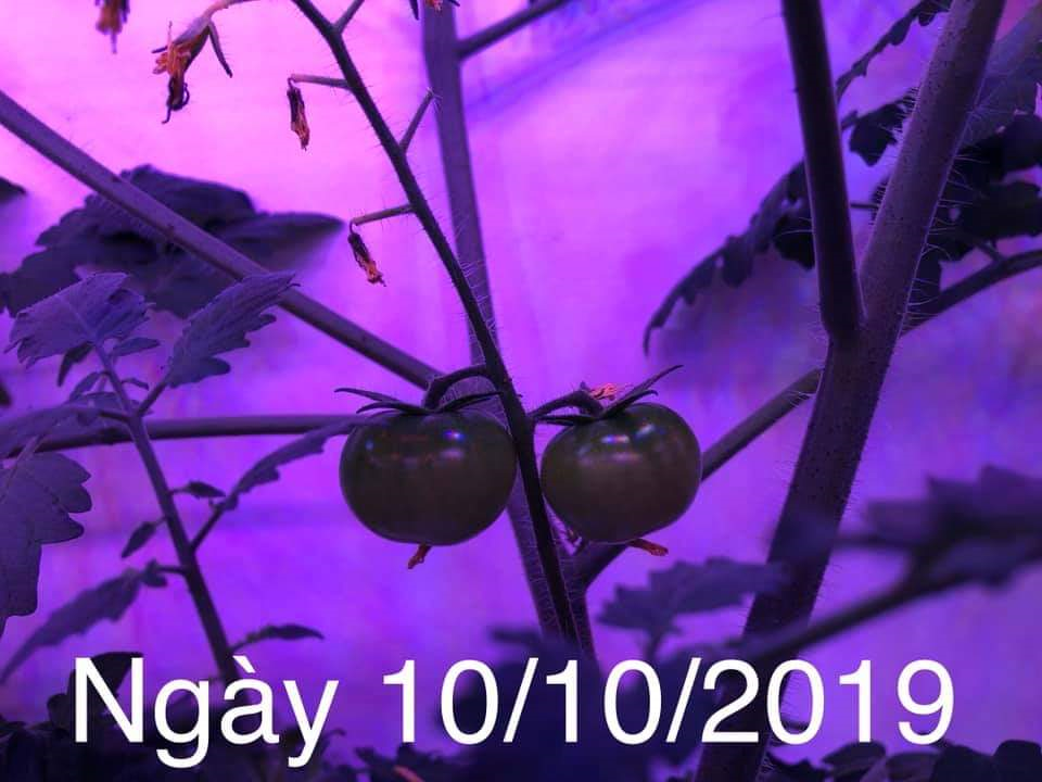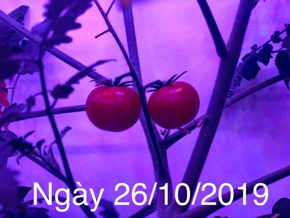 Cây cà chua trồng trong nhà bằng đèn quang hợp cho cây đã lớn và chín đỏ từ ngày 10/10 đến 15/10