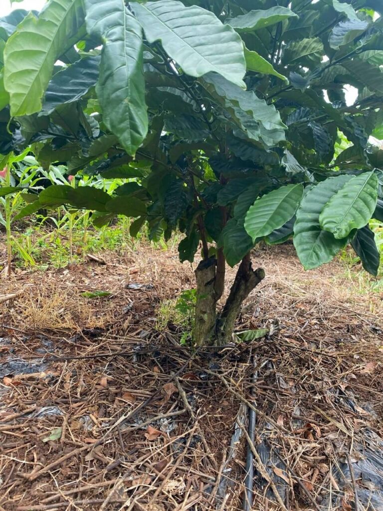 Gốc Cafe già được trồng tại Farm Cà phê công nghệ cao đã gồm hệ thống tưới nhỏ giọt từng gốc cafe. Ngoài ra, hê thống châm phân, nguồn nước sạch cũng là có sẵn