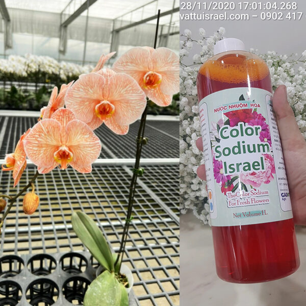 Với nguyên liệu nước màu nhuộm hoa công nghệ Israel (dạng nước) chai 1L được đưa vào sử dụng và thu được kết quả tốt. Điều quan trọng là sự cần mẫn và tỷ mỹ yêu nghề của nhà vườn trồng hoa lan chậu, chịu thử nghiệm và thu được thành công