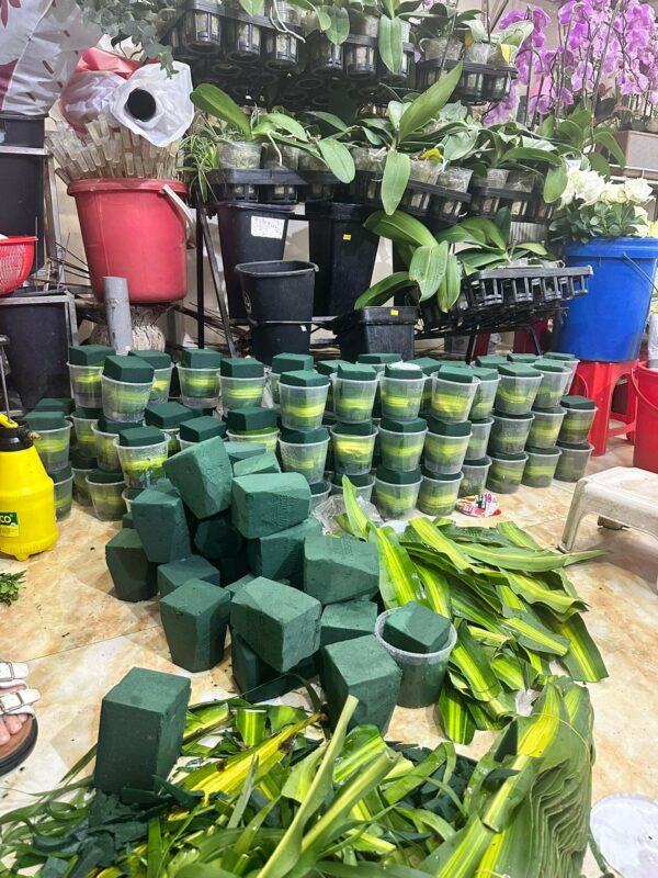 – Bước 4: Trang trí hoa đã xử lý vào Foam xốp đã xử lý theo tỷ lệ Hướng dẫn sử dụng dinh dưỡng hoa tươi Longlife bên dưới