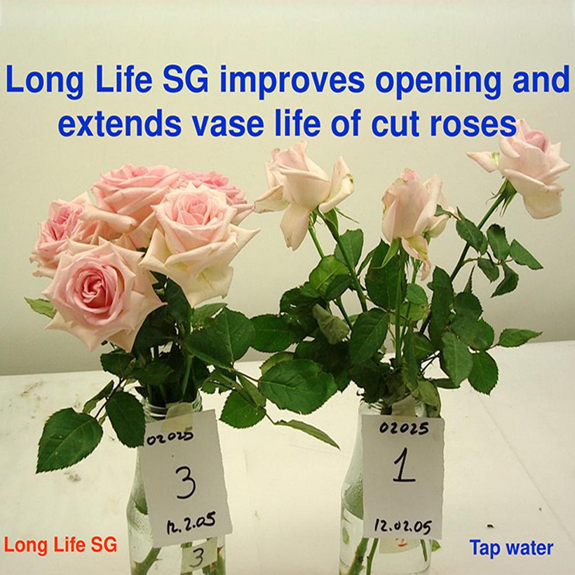 Nước cắm hoa lâu tàn Longlife Longlife SG dạng Hộp 1KG pha được 100L (Gadot Israel với tỷ lệ 1%). Một muỗng màu hồng pha được 1L nước