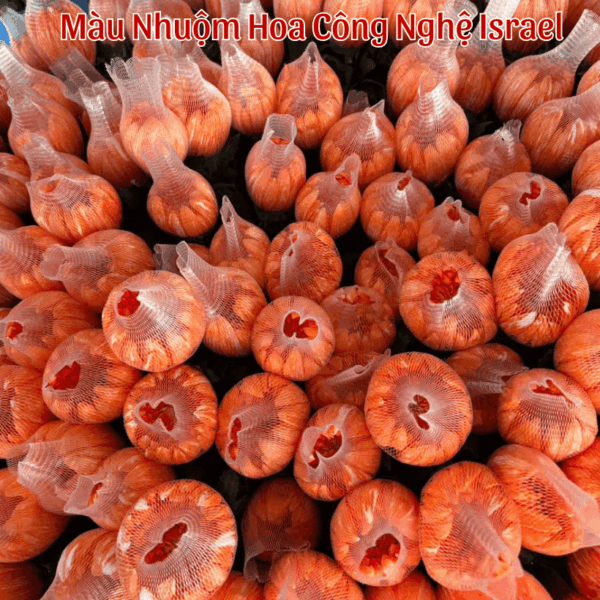 Màu Cam Lửa Israel cho sắc cam rực rỡ, nổi bật và bền màu, được nhiều vựa hoa sử dụng để nhuộm cúc, đồng tiền và hoa decor sự kiện.