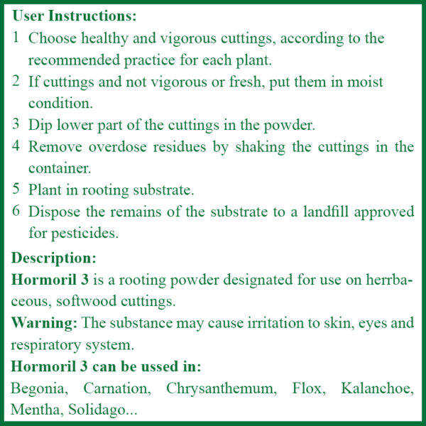 - Bột kích rễ Israel Hormoril 3 dành cho những cây xanh, thực vật lá màu xanh (Hormoril 3 is for green leafy plants like herbs and vegetables)