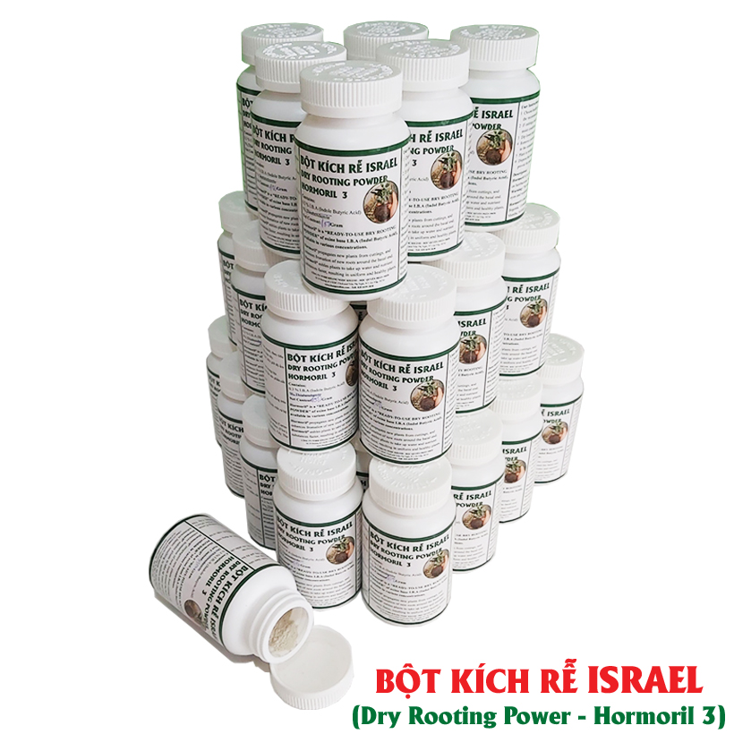 - Bột Kích Rễ Israel là chất điều hòa sinh trưởng thực vật có tác dụng ở phổ rộng, thúc đẩy sự phân chia tế bào và hình thành rễ nhánh, rễ, lá, dùng để tăng nhanh tốc độ giâm trồng và được sử dụng rộng rãi trong việc nhân giống cây nông nghiệp, lâm nghiệp