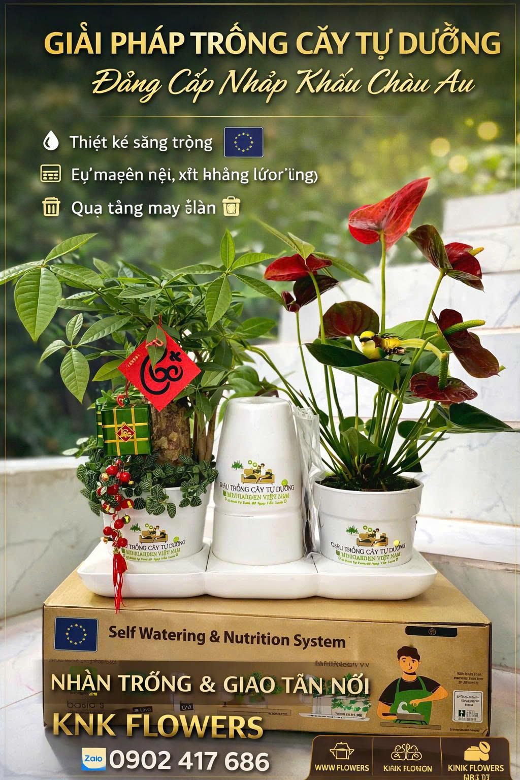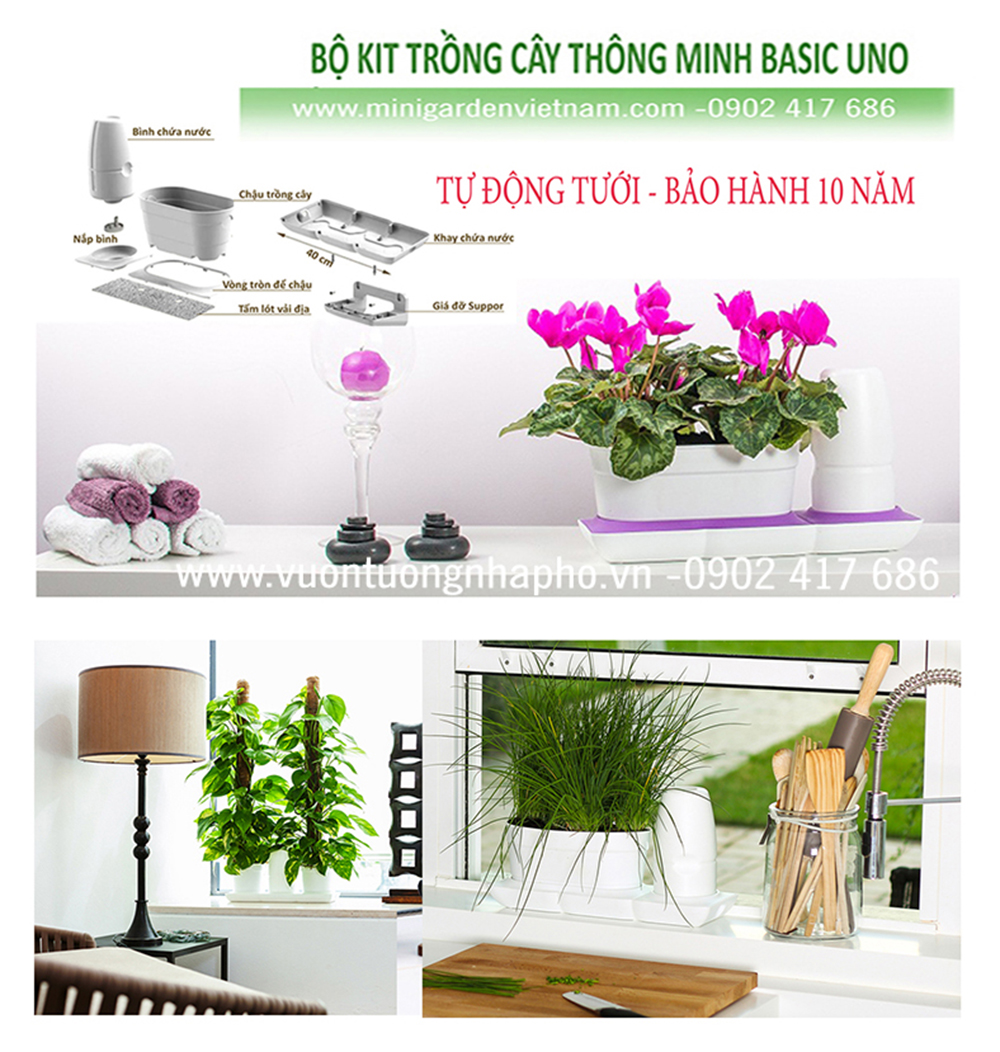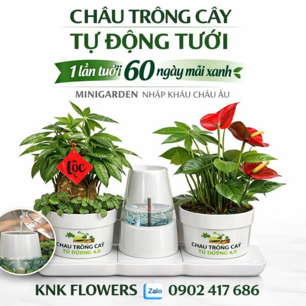 2. Cung cấp trọn gói Chậu tự dộng tưới thông minh nhập khẩu Minigarden Châu Au sang trọng và không cần tươi nước trong 60 ngày, giúp cây tự hút nước từ bình chứa: