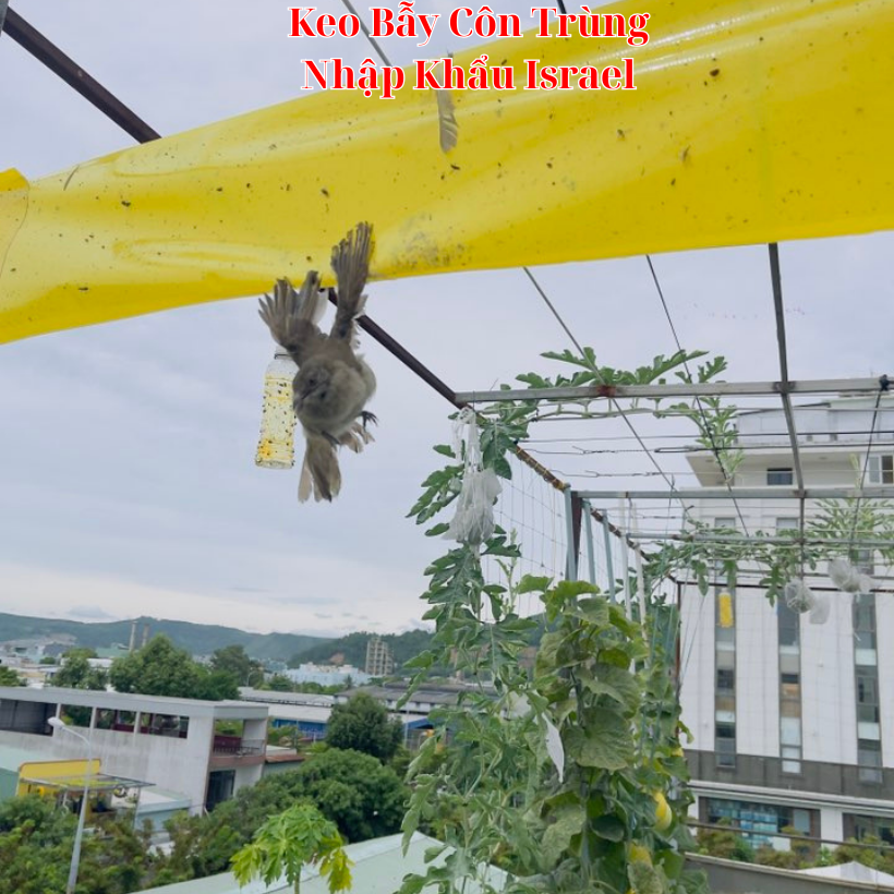 - Bẫy Bọ phấn trắng gây hại dưa lưới thì keo dính vàng sinh học Israel cũng đạt tỷ lệ thành công lên đến 90%