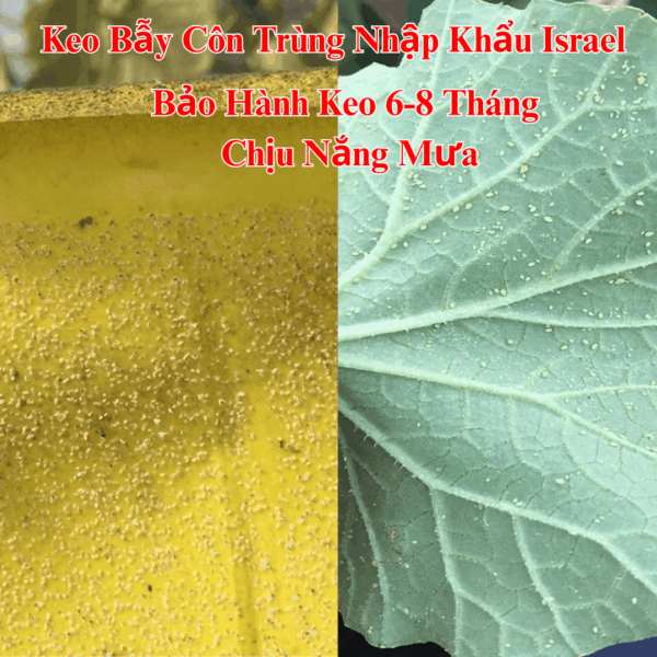 – Keo bẫy côn trùng 2 mặt Israel với thiết kế màu vàng đặt trưng để dụ bọ bay dính vào lớp keo có sẵn. Sự bám dính của côn trùng với lớp keo dẫn đến cái chết của chúng.