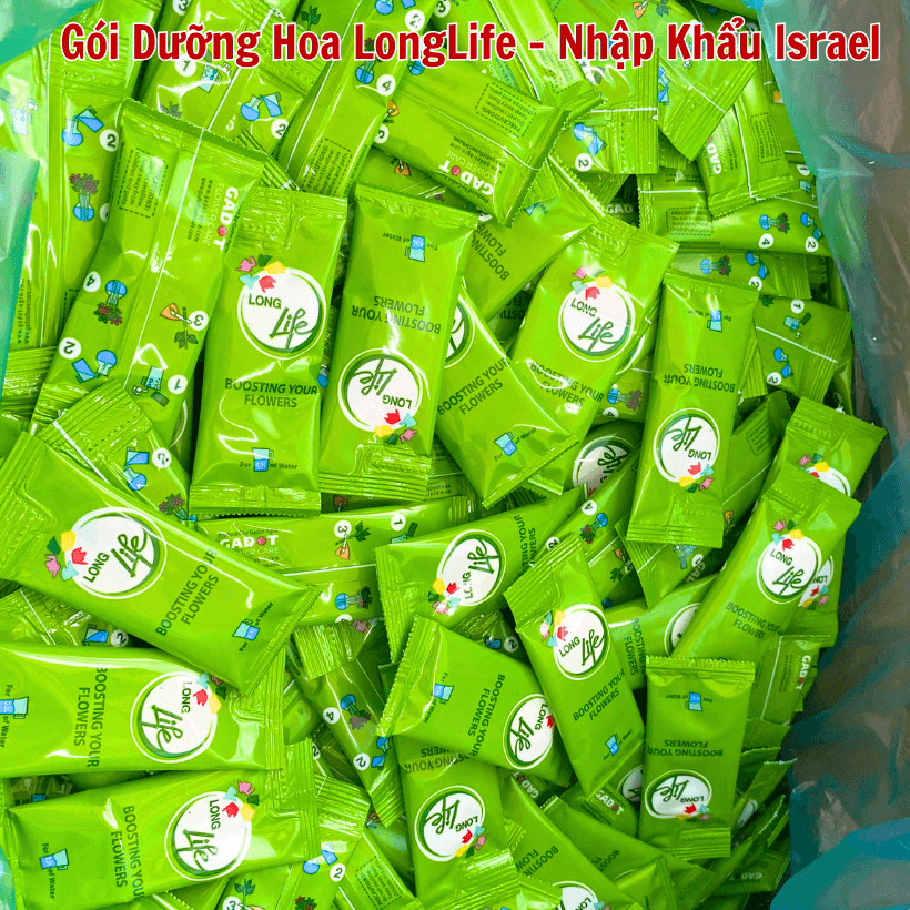 - Nếu hoa hút hết dinh dưỡng Longlife trong bình cắm thì nên pha thêm 1 gói 5gr nữa để duy trì hoa tiếp tục tươi lâu