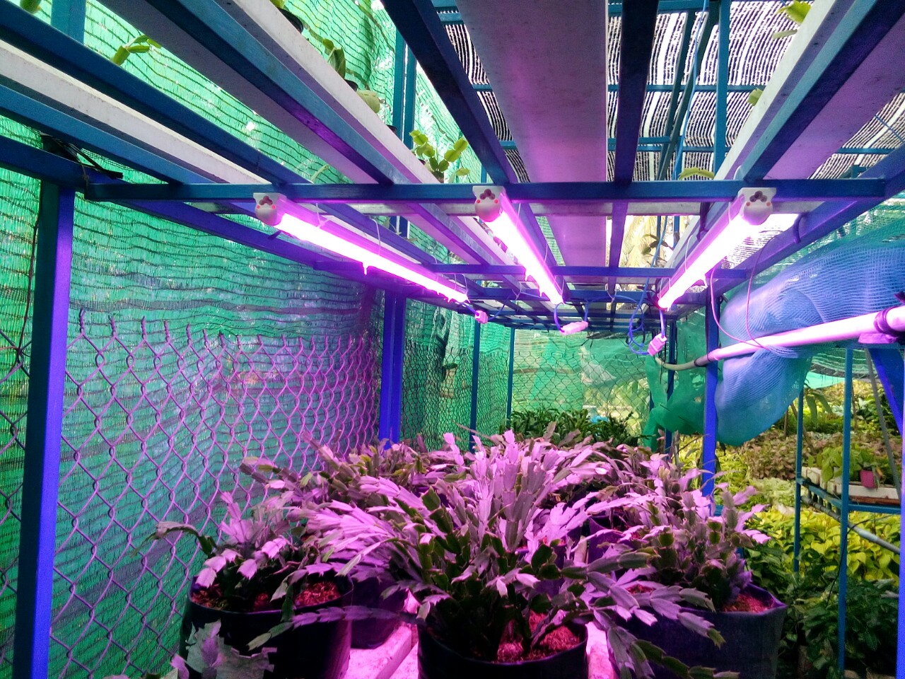 Vì vậy, để hạn chế mắt thường nhìn trực tiếp vào ánh sáng tím quang hợp này, chúng ta chỉ mở đèn vào ban đêm từ 23 giờ đêm đến 6 giờ sáng hôm sau là đèn tự động tắt OFF và như thế là đủ cho chu trình cây trong nhà quanh hợp tốt