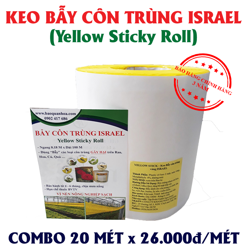Bẫy Ruồi Giấm bằng Keo Dính Vàng Israel (cuộn 20 mét tiết kiệm 30%) và bẫy các loại côn trùng khác gây hại nông nghiệp sạch – Sticky Yellow Roll