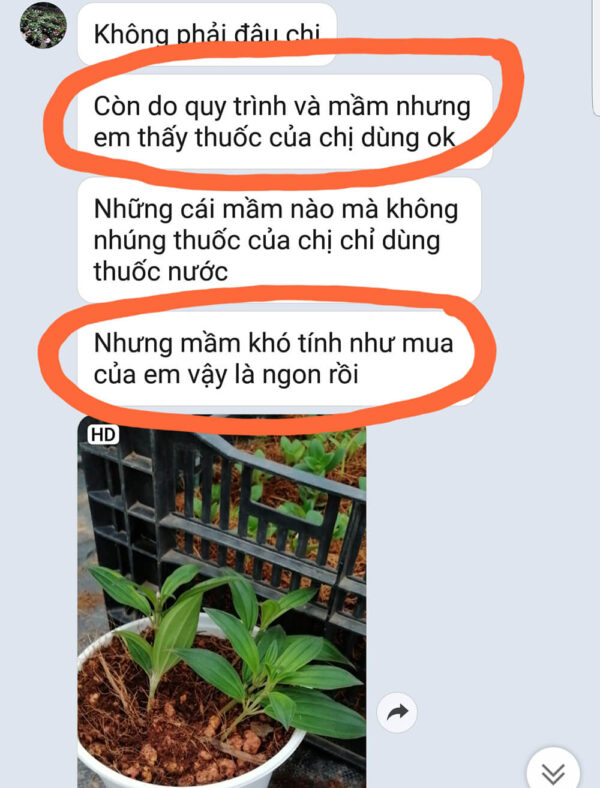 – Điều quan trọng, bạn ấy đã thành công trong “bất ngờ”. Bạn bảo “Hoa Mua rất khó để chiết cành, ép ra rễ nhanh như những loại cây khác”. Nhưng sau khi sử dụng Bột Kích rễ Israel cho cây thân gỗ Hormoril 6, bạn đã thành công