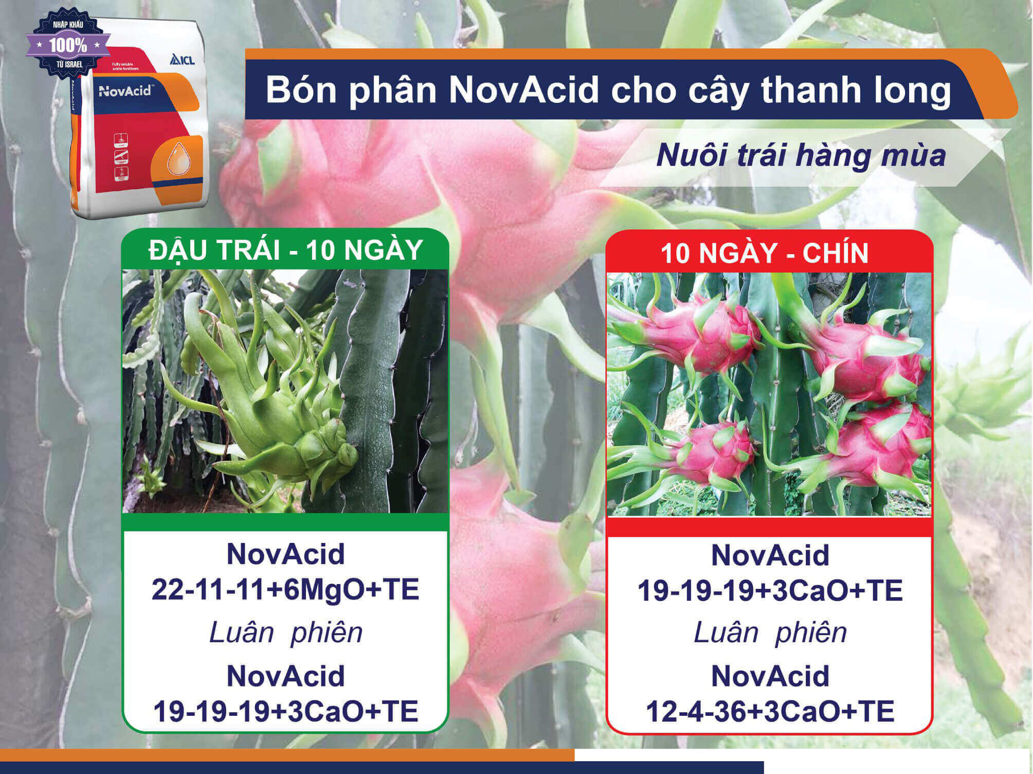 ** MÔ HÌNH DÙNG PHÂN BÓN HÒA TAN ISRAEL NovAcid qua hệ thống tưới nhỏ giọt cho cây thanh long vào giai đoạn nuôi trái: