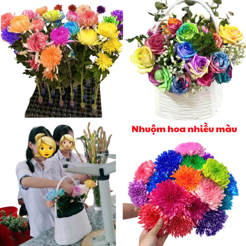 – Quy Cách: Chai 100ml nhuộm đổi màu hoa trên 20 cành, tùy loại hoa