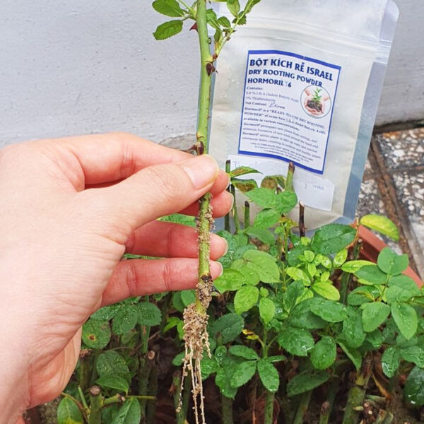 - Bột Kích Rễ Israel Rooting Power Hormoril 6 đặc biệt dành riêng cho hoa hồng thuộc họ thân gỗ. Với thành phần Thiabendazole + Indole Butyric Acid giúp vết cắt cây “liền lại nhanh chóng”, không bị thối và đen đầu. Đồng thời, Thúc đẩy hình thành rễ thân, rễ nhánh, rễ lá , bởi vậy có thể dùng để thúc đẩy sự mọc rễ của hạt giống, ươm giống sinh rễ