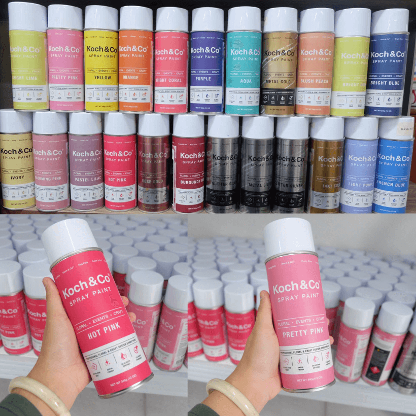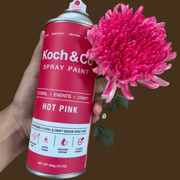 Sơn Xịt Hoa Tươi Úc Màu Hồng Sen Hot Pink hiệu KOCH & CO (nhập khẩu Úc) chai 340g. Bảng màu 23 màu đa dạng. Màu sơn sáng mịn, tự nhiên, mùi nhẹ dễ chịu. Phù hợp shop hoa tươi, florist, hoa cưới, hoa sự kiện và decor chuyên nghiệp.