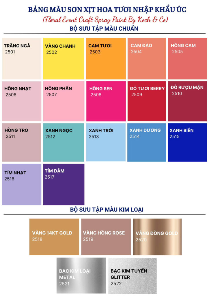 Bảng Sơn Xịt Màu Hoa Tươi Nhập Khẩu Úc – gồm 22 màu