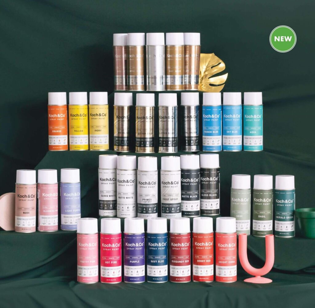 Bộ sưu tập sơn xịt hoa Úc hiệu Koch & Co (Úc) đa dạng màu sắc, chuyên dùng cho trang trí và thiết kế hoa tươi cao cấp.