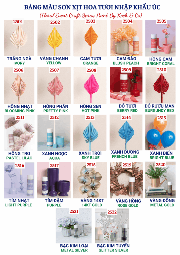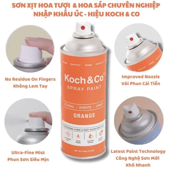 Sơn Xịt Màu Hoa Lan Cao Cấp – Hiệu Koch & Co – Thương hiệu uy tín từ Úc – là sản phẩm chuyên dụng cho hoa tươi, hoa cánh mỏng như Lan hồ Điệp, Hoa Sáp, hoa Khô…