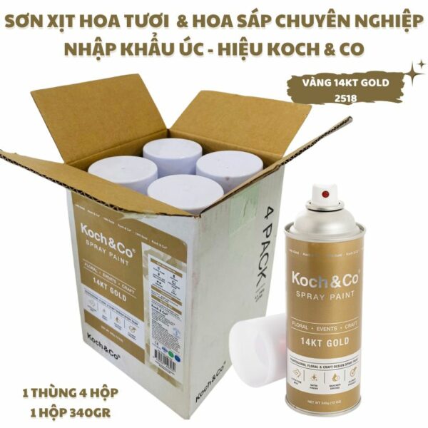 • Sơn Xịt Màu Hoa Tươi Nhập Khẩu Úc – Màu Vàng 14KT Gold giúp phủ vàng Gold lấp lánh cho các vật dụng trang trí, décor, backdrop để tạo điểm nhấn – tạo nên phong cách sang trọng, thu hút ánh nhìn