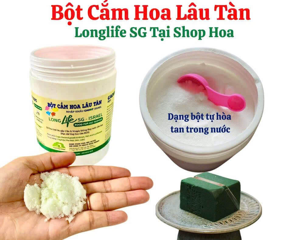 - Bột dưỡng hoa tươi lâu Longlife SG của Israel dành cho Shop Hoa được đóng gói dạng hộp 1KG tiện lợi và tiết kiệm chi phí.