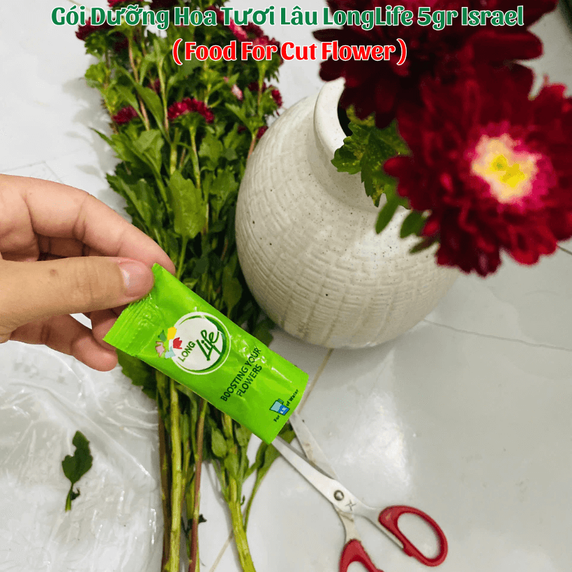 BÍ QUYẾT XỬ LÝ HOA THỦY TIÊN CẮM BÌNH TẠI NHÀ TƯƠI LÂU, CÁNH HOA CỨNG CÁP, HOA NỞ BUNG ĐỀU VÀ 14 NGÀY KHÔNG THAY NƯỚC BẰNG GÓI DINH DƯỠNG HOA CẮT CÀNH HIỆU LONGLIFE 5GR CỦA ISRAEL