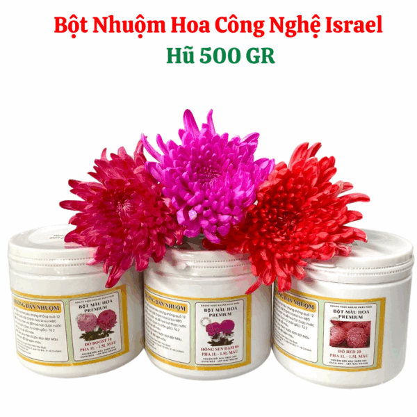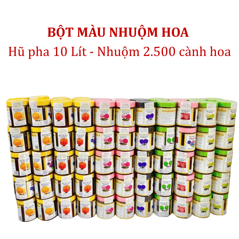 + Đóng gói 3: Hủ 500gr thuốc bột màu hoa nguyên liệu pha 85L – 90L nước màu hoa tươi hoàn chỉnh (không pha trộn chất độn)