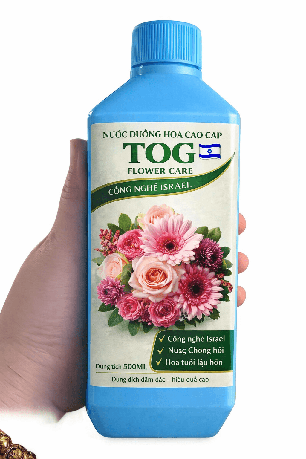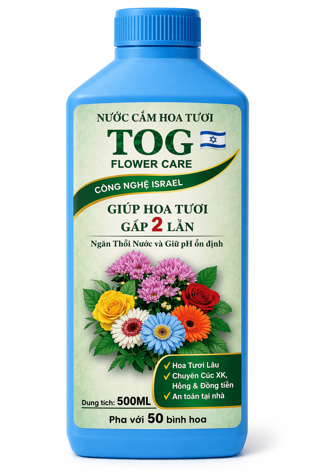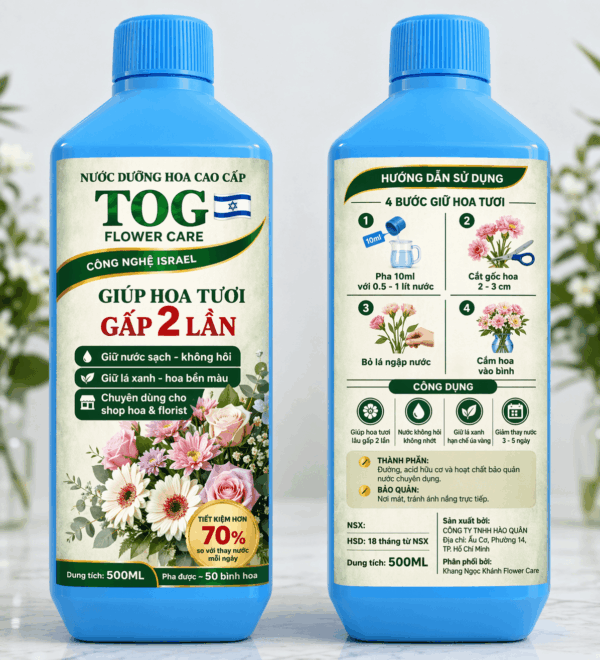 Thuốc Nước Cắm Hoa 500ml TOG công nghệ Gadot Israel chuyên dụng cho Shop Hoa, Florist và Cắm bình tại nhà tươi lâu và hạn chế thay nước hàng ngày giúp tiết kiệm nhân công và chi phí mua hoa mới, Dung tích: 500ML (pha 50 bình hoa). Hạn sử dụng: 18 tháng