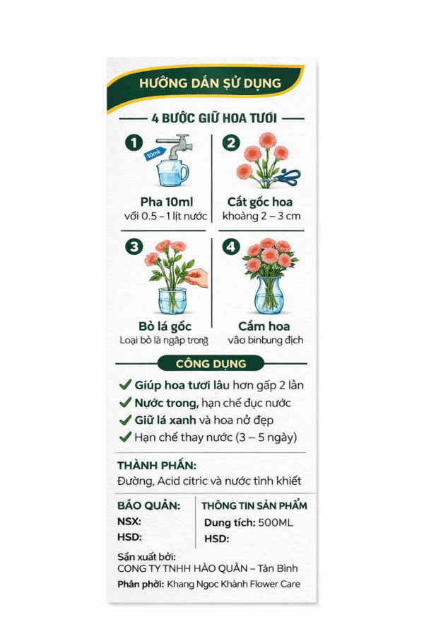 HƯỚNG DẪN SỬ DỤNG CHAI NƯỚC CẮM HOA 500ML