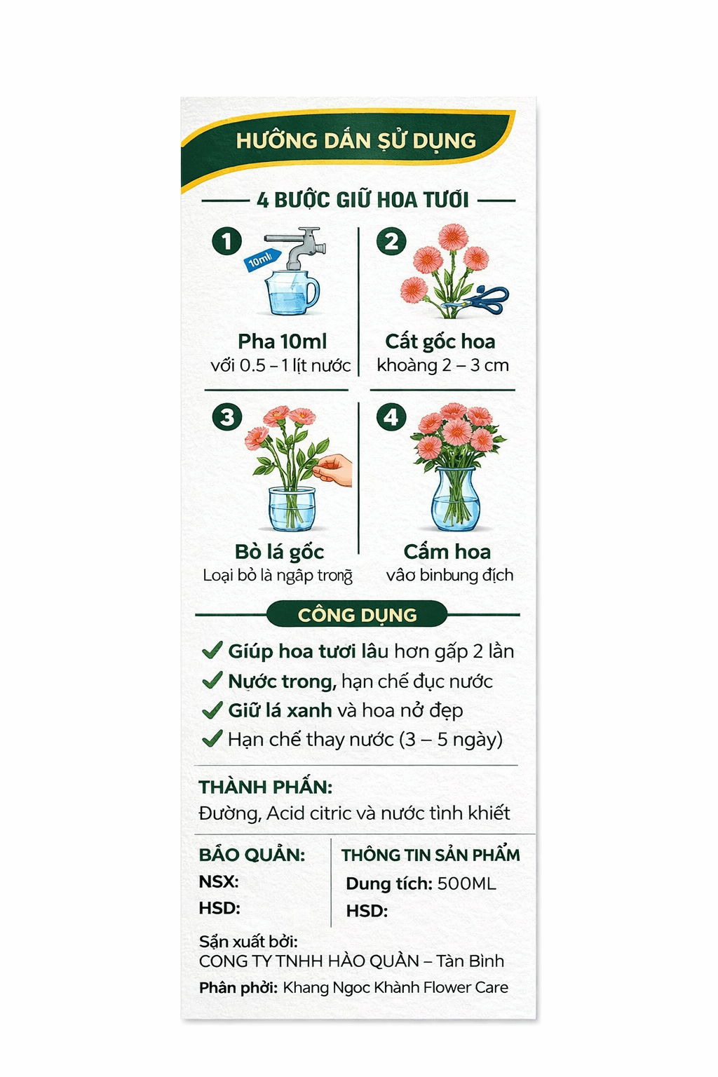 4. HƯỚNG DẪN SỬ DỤNG CHAI NƯỚC CẮM HOA 500ML
