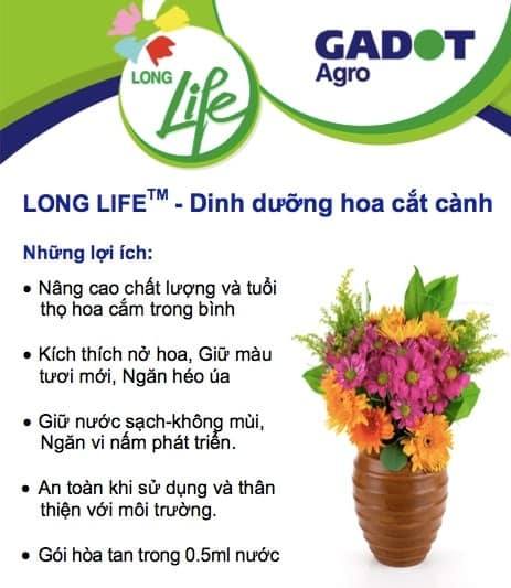 – Nước cắm hoa lâu tàn Longlife giúp hoa tươi lâu gấp 2 lần và 14 ngày không thối nước (không thay nước mới – không cắt tỉa gốc)