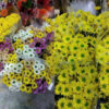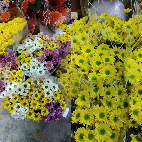 Hình ảnh hoa cúc thực tế tại Chợ sỉ hoa quận 7. Hoa cúc được vận chuyển từ Đà Lạt về TP. HCM và thời tiết nóng và xe nhỏ nên hoa bị hỏng. Ngoài lá bị héo ra thì cánh hoa khá mỏng. Hoa bị Thiếu nước nghiệm trọng