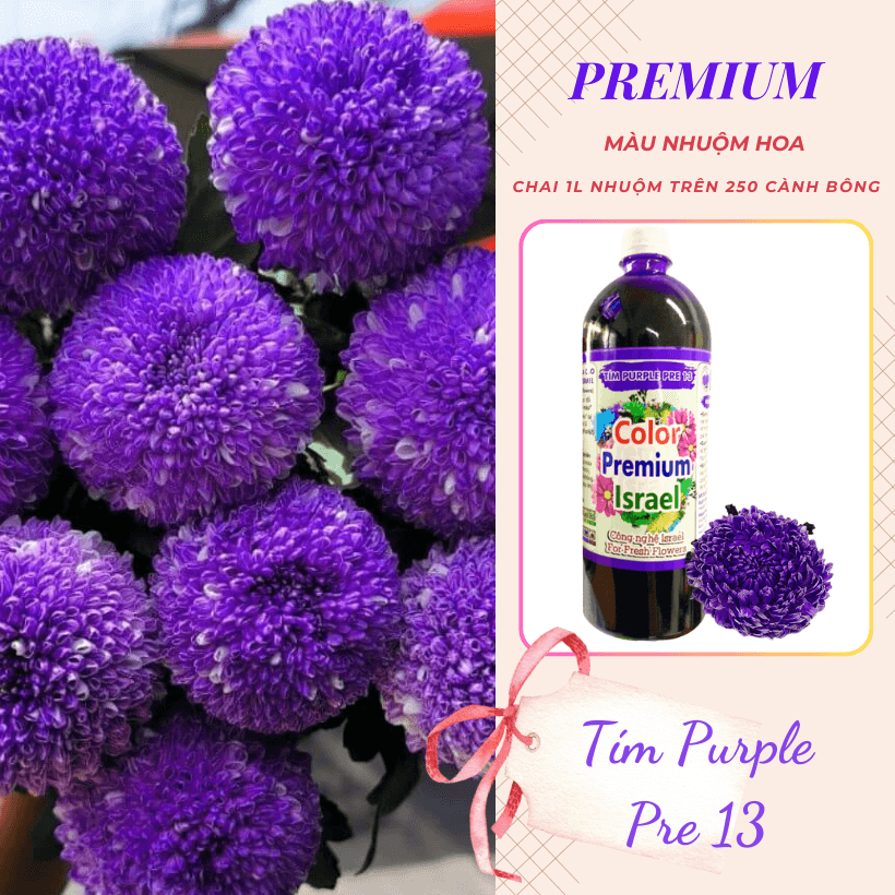 Nước Màu Nhuộm Hoa Tươi Màu Purple Pre 13 giúp hoa lên màu chuẩn Tím, Sáng, Đều cánh, nhìn tự nhiên