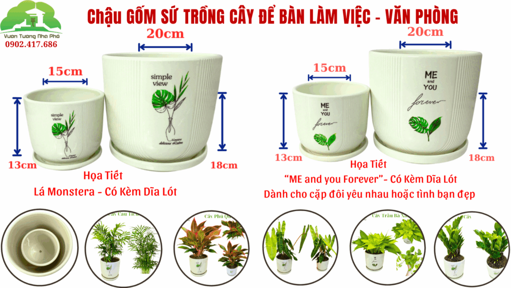 – Cây trồng bên trong chậu để bàn văn phòng phù hợp. Tùy vào sở thích, nhu cầu và phong thủy vui lòng để lại tên cây mà bạn thích 0902 417 686 hay chúng tôi sẽ “đi chợ mua cây trong nhà” thay cho bạn nhé